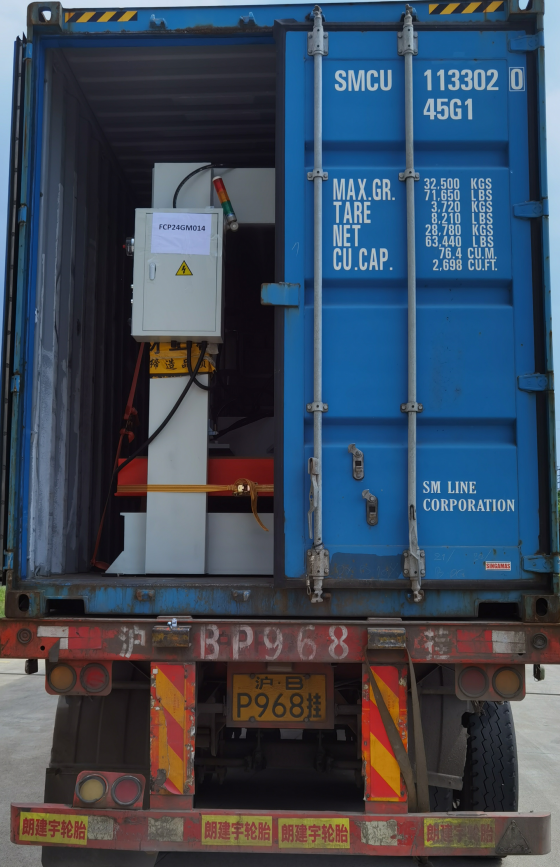2024年5月16日、17日,客戶定制、雄鷹精密機(jī)械公司生產(chǎn)的XYJ-3/200雙邊送料臺液壓裁斷機(jī)2臺、XYJ-3/120四缸冷壓機(jī)60臺通過12個40HC集裝箱發(fā)往上海港、出口泰國。